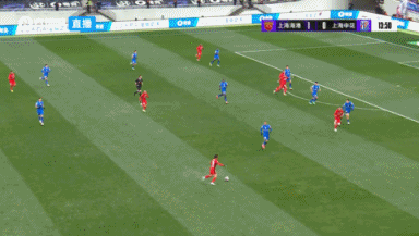 伤停补时2分钟。上半场比赛结束,上海海港1-0上海申花。